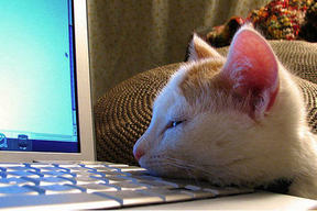 I no some of uz r aminol luvrs and wuz wunderinz how I wuz doin' sinz I gotz no harez. Wellz I iz the samez as I ever waz. Jus wif less hare. But iz grwin backz. My fawster hoomanz keepz laffin' at mez but oder den datz theyz takin gud care of mez. I sleepz in dare bed and in the morninz I rubz my bawld spot on the lady hoomans forheadz and keepz it there til she wakez up. Tee heez. We connectz. I lay wif hur sinze the man hooman leavs earlyz til her lazy azz finally getz ups and she givez me fudz and then letz me outsidez to smell oder catz pewpz, and new flowerz, and whatevr oder new stuf I can getz my noze on. I lurned my lezzon for nowz to stop pikin fites wif oder catz. Espshually big blak catz that haz mor muczles than mez.